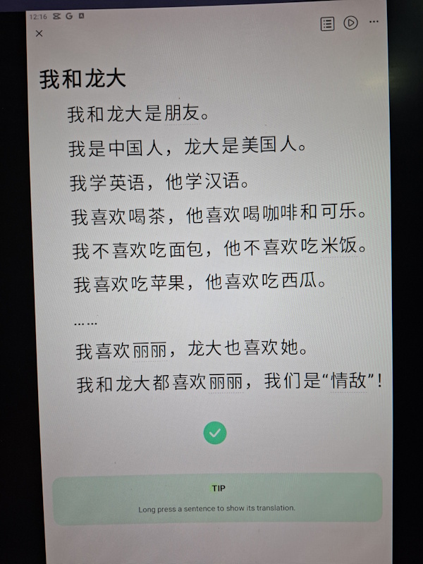 Tính ra mình đã học 175 ngày, tổng cộng hơn 300 tiếng, và đạt được mốc HSK4/A2. Chắc là ngang với IELTS ~3.5. Với 300 tiếng bỏ ra thì level này cũng hợp lý, chẳng nhanh cũng chẳng chậm. Hiện tại lượng từ vựng của mình mới giới hạn trong khoảng ~1.500 từ phổ thông, nên vẫn chỉ đọc được những nội dung đơn giản. Khả năng nghe vẫn chỉ dừng ở những đoạn hội thoại ngắn, người nói phát âm rõ ràng. Chứ mà nghe người bản xứ bắn 1 tràng, lại còn thêm giọng địa phương và nuốt chữ nữa, là chịu luôn không nghe nổi. Vẫn cần phải luyện tập rất nhiều.
