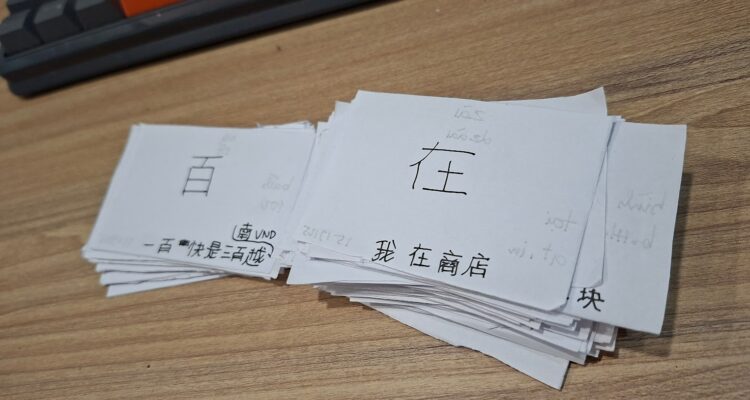 Ban đầu còn hì hục viết từng flashcards từ mới bằng tay. Nhưng sau đó mình nhanh chóng nhận ra là với ngôn ngữ tượng hình như này viết tay rất không hiệu quả, nên là đã bỏ luôn việc viết tay.